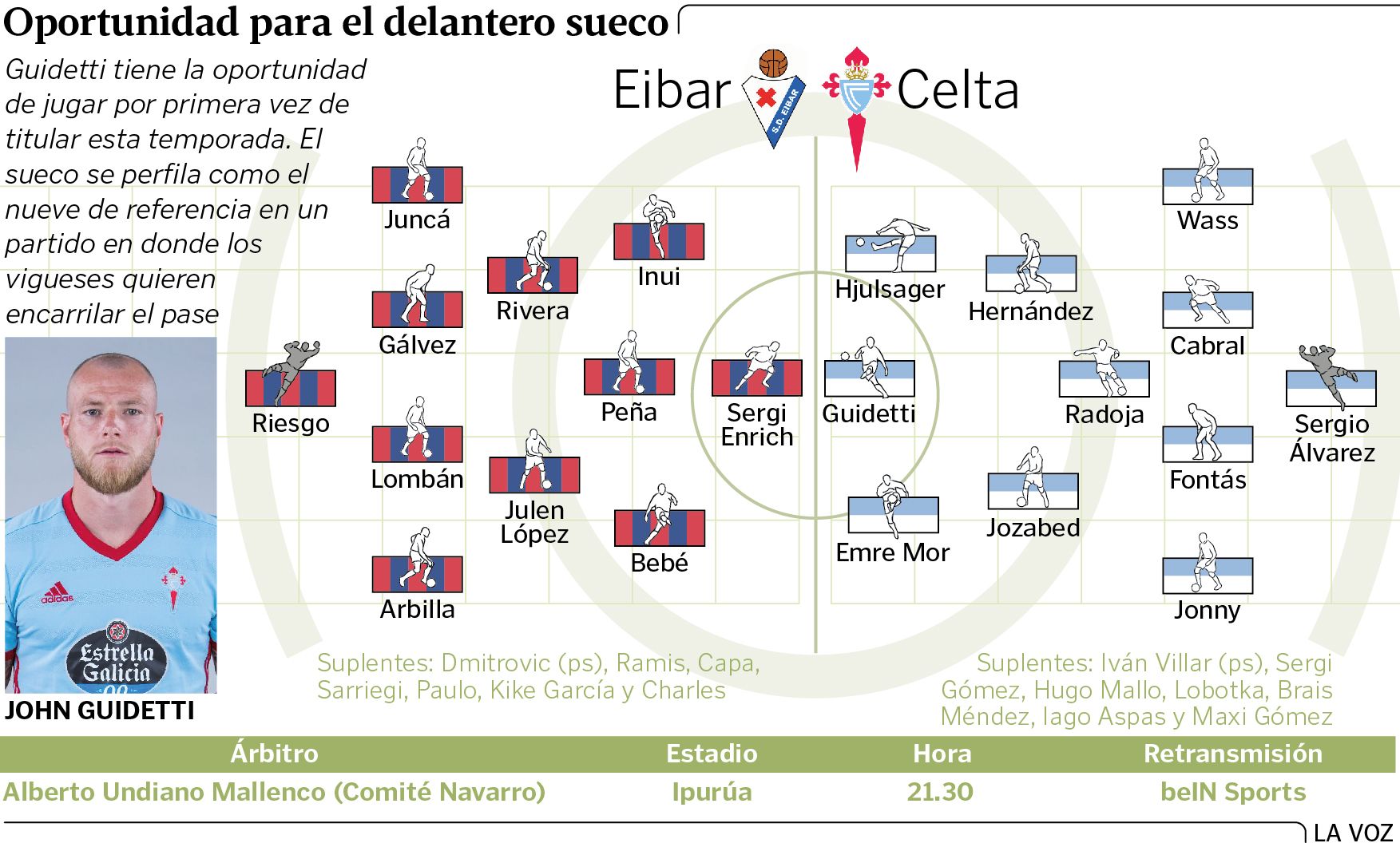 Nostalgias al margen, el Celta se exige firmar un buen torneo y necesita dejar constancia desde el principio. Por eso los vigueses pondrán un once con rotaciones, pero de lo más aseado en Ipurúa, con jugadores del primer equipo en su totalidad, ya que el único con ficha del filial que viaja es Brais Méndez.