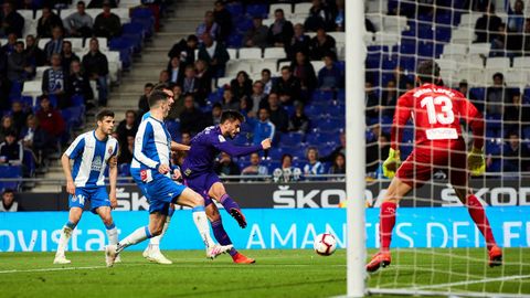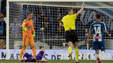 Todo cambió en el minuto Jarque. Mientras el despoblado Cornellá aplaudía recordando a su capitán, el Espanyol lejos de pararse aceleró y al Celta comenzó a entrarle el vértigo. Primero perdió las disputas, después el balón y por último la posición y tras un par de avisos por el centro de la defensa llegó el tanto de Wu Lei tras una combinación con Marc Roca, que anuló a la defensa con un balón a la espalda, lo que unido a la media salida de Rubén dejó todo a placer para que el chino marcase en posición acrobática.