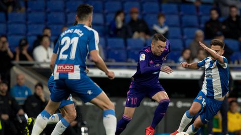 El segundo tiempo dibujó un nuevo escenario. El Espanyol replegó en busca de una contra decisiva y el cuadro de Escribá asumió que tenía que dar un paso adelante con el balón. Pero salvo en una triple ocasión con balón al palo de Aspas, rechace de Diego López a tiro de Maxi y disparo al limbo de Boudebouz, el Celta no conseguía traducir su dominio en ocasiones claras. Incluso en un córner Mario Hermoso remató a la madera para el Espanyol.