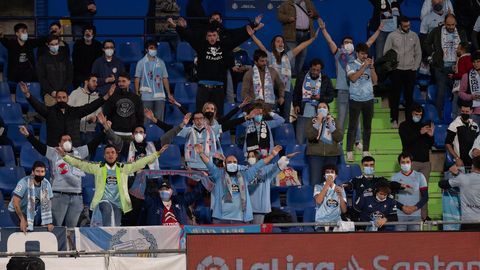 26 oct 2021 . Actualizado a las 05:00 h.Como sucedió el domingo en Old Trafford, en el Coliseum Alfonso Pérez Muñoz, la afición del Getafe también abandonó en masa el recinto cuando el Celta marcó el tercer gol. En realidad fue el único momento en donde el público local se hizo visible, porque a lo largo de todo el partido fue la afición del Celta la que se dejó sentir en el estadio animando de un modo incansable al conjunto vigués, que agradeció el esfuerzo a la conclusión.