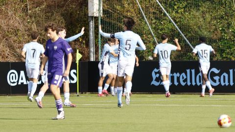 El Celta de División de Honor Juvenil se reencontró con la victoria y consolida su liderato en División de Honor Juvenil antes de afrontar el derbi ante un Val Miñor en horas bajas. Visitaba A Madroa el Montañeros, que se fue al descanso con desventaja de solo un gol, marcado por Ángel Davila a los tres minutos del choque. Ya en la segunda mitad, un Celta en superioridad numérica se aprovechó de la circunstancia para decantar por completo la balanza on un doblete de Sergio Beltrán, Ratón, que se estrenaba como goleador céltico, más los tantos de Iago Barreiros y Hugo Pérez.