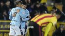Los jugadores del Celta también sintieron el apoyo de la afición local durante la tanda de penaltis, ya que el sorteo de campo decidió que la suerte del partido se decidiera en el fondo en el que se concentraron los cerca de 400 aficionados celestes que acudieron al Narcís Sala. En la otra portería, sin embargo, se juntaban las peñas de animación de un estadio que aprieta, y mucho, desde la grada.