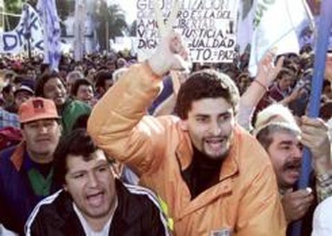 22 may 2002 . Actualizado a las 07:00 h.El paro de ayer fue convocado por el ala radical de la Confederación General del Trabajo (CGT), la más antigua e importante central del país. Duró 12 horas e incluyó una manifestación en la Plaza de Mayo. «No podemos andar mendigando como gusanos por el mundo», enfatizó el líder sindical Hugo Moyano, quien pidió hacer «una política nacional». El sindicalista afirmó que el Gobierno «no tiene el coraje suficiente para poner a la Argentina de pie». Por su parte, el ministro de Asuntos Exteriores, Carlos Ruckauf, admitió que la decisión de los países europeos de no ayudar a Argentina hasta que se llegue a un acuerdo con el FMI «es claramente una presión».