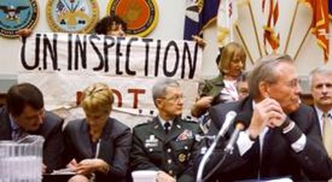 19 sep 2002 . Actualizado a las 07:00 h.La resolución para presentar a las cámaras, anunció Bush, estará lista en un par de días, y tendrán que votarla antes de las elecciones del 5 de noviembre. Poco después, el secretario de Defensa, Donald Rumsfeld, urgía al Congreso a apoyar al Gobierno al margen de las decisiones que tome el Consejo de Seguridad de la ONU, y sobre todo, antes de que éste se pronuncie. Rumsfeld fue interrumpido por un grupo de activistas que gritaron «Inspecciones sí, guerra no», pero él habló de Irak como parte de la lucha contra el terrorismo internacional. Uno de los objetivos de esta guerra es evitar que los terroristas obtengan armas de destrucción masiva, dijo. «Es decisivo evitar un segundo 11-S, tanto si viene de una red terrorista como de un régimen terrorista». El presidente estadounidense expuso la importancia del pacto: «Es una señal para que el mundo vea que este país está unido y que queremos parar a Sadam antes de que lance un arma de destrucción masiva». Y mostró su convencimiento de que «los países que piensan en la paz se unirán a nosotros». «Sadam miente» Sobre la aceptación de Irak al regreso de los inspectores, Bush dijo que es un nuevo «truco» y que «Sadam no nos va a tomar el pelo... engaña, confunde y miente...». El jefe de los inspectores de Naciones Unidas, Hans Blix, presentará hoy en el Consejo de Seguridad su plan para reanudar los controles y continuará las conversaciones con los dirigentes iraquíes dentro de diez días en Viena. El secretario general de la ONU, Kofi Annan, aseguró que Blix y su equipo ya están listos. Pero el ministro de Exteriores iraquí dijo que ellos no. Además, Bagdad pasó a la ofensiva diplomática y advirtió a la ONU que «la pelota está en su tejado y que debe probar su credibilidad». Los inspectores pueden estar en Irak en tres semanas, pero tienen ocho meses para el primer informe. La urgencia de Washington se debe, según The New York Times , «a que el ataque debe hacerse en enero o febrero, cuando la temperatura es lo bastante baja en el desierto como para que los soldados vistan el equipo de protección química y biológica».