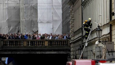 La Policía acordonó la zona a un radio de unos doscientos metros del edificio y cortó el tráfico de coches y tranvías en el área.