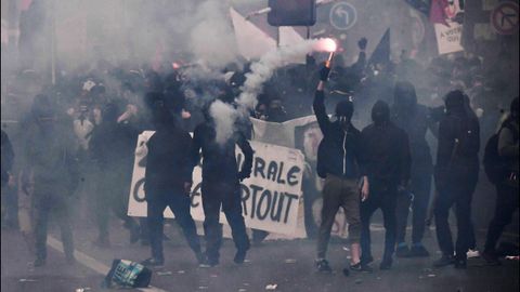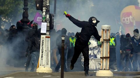 La violencia empañó la manifestación del Día del Trabajo en la que más de 1.000 enmascarados se enfrentaron a la policía con cócteles molotov y objetos incendiarios