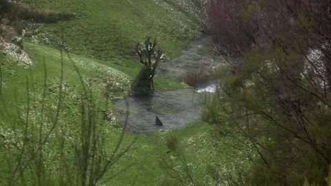 En el paraje conocido como Val Maior -cerca de la localidad de Paderne- puede verse estos días cómo el agua brota abundantemente del suelo, pero en este caso el origen de la surgencia no es natural. Se trata de un arroyo que en cierto momento fue canalizado con lajas de pizarra y tapado con tierra. La obra se hizo para permitir el acceso a una zona de prados que se encuentran al otro lado de esta corriente de agua, una solución que ahorró la construcción de un puente para el paso del ganado. Lo que no se puede saber es cuándo se llevó a cabo esta singular obra. «Los vecinos de Paderne saben que el arroyo fue canalizado y tapado, pero ni los más mayores recuerdan cuándo se hizo», señala Guillermo Díaz. Al estar un buen tramo de este regato totalmente cubierto de tierra sobre la que crece la hierba, da la impresión de que brota de forma natural del suelo en el punto donde el agua reaparece al aire libre. Los visitantes que pasan por este lugar sin conocer su peculiaridad pueden tomarlo por un manantial.