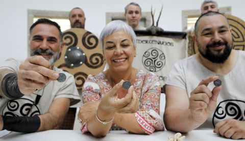 A Concelleira de Cultura, Carmen Basadre, e o tesoureiro e o vogal da Asociación Mercenarios Galaicos, Ricardo Vilariño e Julio Montero, presentaron a primeira moeda castrexa do Arde Lvcvs. Na presentación, a edila deulles os parabéns polo traballo que realizan, tanto Mercenarios Galaicos como todas as asociacións que representan ao pobo castrexo.