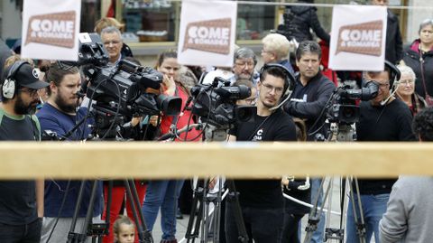 Numerosas persoas seguiron na praza de España a gravación do concurso que será emitido por TVG
