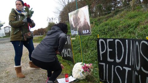 Dejan flores y velas en el lugar de Soilán en el que el cazador disparó a la perra