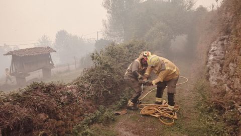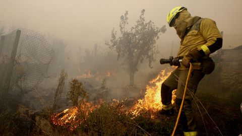 Un grupo de bomberos llegados de los parques contraincendios de Monforte, Sarria y Chantada se apostaron en su finca, la más alta del barrio de O Outeiro, para tratar de parar el fuego allí. Y finalmente lo lograron. Allí no ardió ninguna casa.