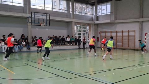 El pabellón de los institutos fue escenario este lunes de una jornada de convivencia e integración. Un equipo del IES Río Cabe, en el que participaron 150 alumnos, disputó un partido con un conjunto de Prodeme. Es la segunda edición de esta jornada inclusiva que promueve el profesor de Educación Física del IES Río Cabe, Jorge Fortes.