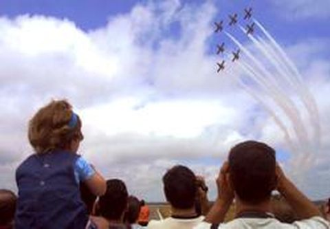 La patrulla Águila consiguió agradar a los cientos de personas que acudieron a Rozas, a pesar de que las nubes estuvieron a punto de suspender la exhibición