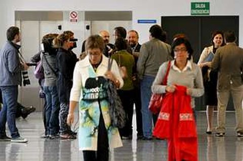 Las juezas Estela San José y Pilar de Lara caminan por los pasillos del juzgado mientras la prensa pregunta al alcalde sobre una de sus comparecencias FOTO