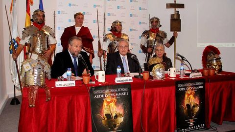 21 may 2013 . Actualizado a las 22:30 h.Un día después de presentarse todo el programa del Arde Lucus de este año, el alcalde, José López Orozco, la edila de Cultura, Carmen Basadre, y el presidente de los hosteleros lucenses, Cheché Real, acudieron a Madrid para presentar en la Casa de Galicia una cita que cada año tiene más resonancia. En la presentación, un acto público, no estuvieron solos, ya que les acompañó una representación de las legiones romanas formadas por miembros de la Cohors III Lucensium y la Guardia Pretoriana.