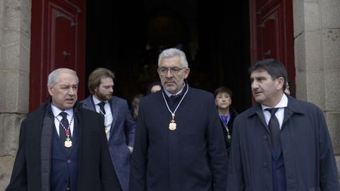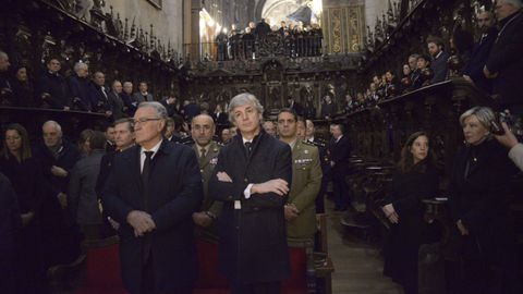 Estuvieron presentes Pedro Blanco, delegado del Gobierno; Javier Arias, delegado de la Xunta; Inés Rey, alcaldesa de A Coruña; Gonzalo Pérez Jácome; su homólogo de Ourense; José Tomé, presidente de la Diputación de Lugo, Moisés Muñiz, jefe de la Policía Adscrita de Lugo; Luis Germán Avilés Cabrera, jefe de la Comandancia de la Guardia Civil, y alcaldes de toda la provincia, al igual que diputados y senadores gallegos. Además, una gran cantidad de funcionarios y trabajadores del Concello. La corporación municipal de Lugo llegó conjuntamente a la catedral, encabezada por el nacionalista Rubén Arroxo, alcalde en funciones, y Miguel Fernández, que será nombrado regidor en el pleno de este martes. Los miembros del BNG no acudieron a la misa, sino que se quedaron en el atrio de la Catedral mientras se celebraba el rito.