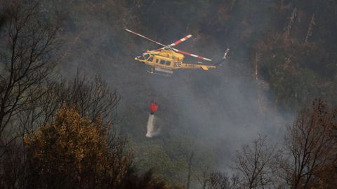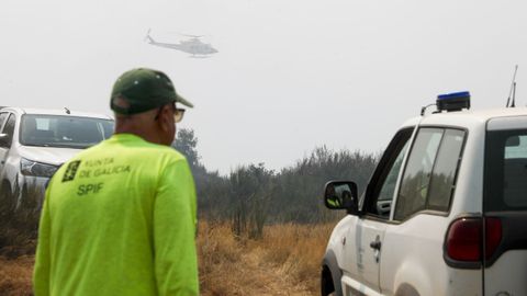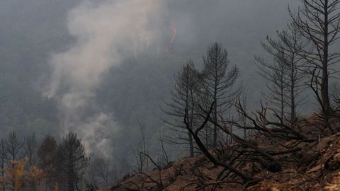 López explica que el municipio vive ya un segundo incendio que «complica» la extinción después del fuego iniciado el martes. El regidor, que valora el trabajo de los medios llegados al municipio, relata los problemas para apagar el fuego en una zona «muy pendiente» en Monteseiro. Lamenta que las perspectivas no son buenas «mientras siga haciendo calor y 'nordés».