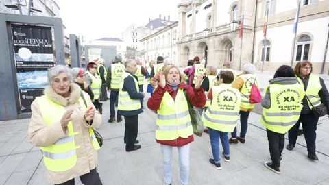 Hicieron una protesta para exigir la apertura de la residencia de mayores del concello, construida por el ente provincial