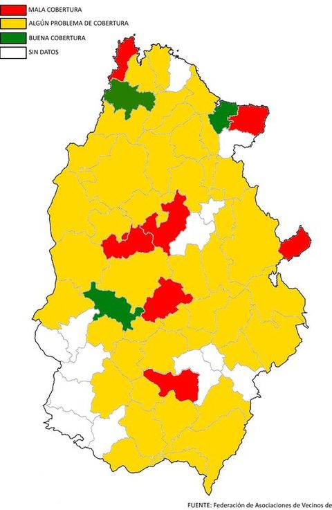 Su estudio revela que A Mariña tiene una cobertura muy deficiente en O Vicedo y en Ribadeo, donde es «moi regular e nas parroquias fatal». También en la montaña tienen problemas. En A Fonsagrada va bien, pero en pueblos o parroquias del municipio «mal», algo que se repite en la mayoría de los concellos.
