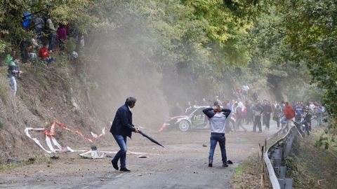 La tarde arrancó muy accidentada. En el primer tramo celebrado en Láncara, David González perdió el control de su Skoda Fabia en un cambio de rasante y, después de realizar varios trompos, dijo adiós a la carrera. Por fortuna, tanto su copiloto como él salieron indemnes del percance. Si bien, hubo que neutralizar el sector.