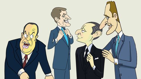 Morto o caudillo, Fraga deixou a embaixada de Londres e volveu, non para facer unha aperturiña do Réxime, senón a transición á democracia e empezou como vicepresidente e ministro de Gobernación no primeiro Goberno da Monarquía, presidido por Arias Navarro; pero, chegado o momento de nomear un novo presidente, o rei, coa axuda de Torcuato Fernández Miranda, elixiu a Adolfo Suárez. O xornalista Emilio Romero afirmou: «Es como si hubieran hecho a La Chelito madre abadesa de las Descalzas». Pode que tivese razón, pero a Suárez pasoulle como a Giovanni Bertone, humilde actor que na Segunda Guerra Mundial se fixo pasar polo xeneral De la Rovere e tanto asumiu o seu papel, que se deixou fusilar como se verdadeiramente o fose. Un banqueiro agardaba ser recibido en presidencia cando Suárez saíu con Willy Brandt. Ao volver comentoulle: «¿Has visto quién era ese? Pues yo soy más demócrata que él».