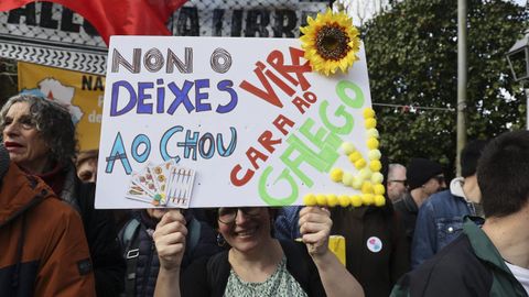 Pero case nos mesmos días un grupo de alumnos e alumnas do IES Antonio Fraguas de Santiago de Compostela ofrecéronnos un espectáculo de cordialidade, intelixencia e amor á lingua galega que non quixera deixar pasar, porque é a outra cara da moeda. Con eles quero titular esta marea. Corenta rapaces en escena. Música, pandeiretas, unha percusión magnífica, voces harmonizadas. O saber do pobo. O sabor das cantigas, titúlase. Noventa minutos de actuación entre o rock and roll e os cantos patrimoniais. Todo coa intelixencia e o talento da mocidade e do profesorado (Pedro Lamas, Pablo López, Olga Veiga), do departamento de artes escénicas e musicais do centro. Aquí está o futuro. O músculo da esperanza.