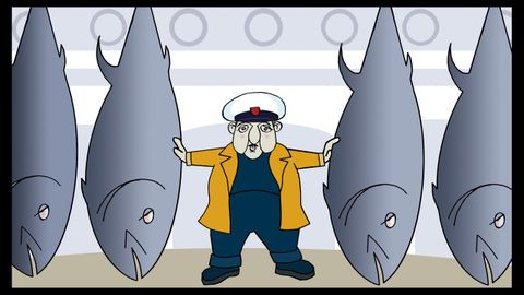 Do Franco pescador contábanse moitos chistes, pero ningún tan divertido como as notas de prensa oficiais que narraban as súas fazañas no Azor, loitando sen axuda de ninguén con peixes monstruosos. En agosto daquel 1957 soubemos que coa forza do seu brazo pescara un de tres metros de longo, 50 centímetros de diámetro e 2.000 quilos de peso. En 1957 semellaban esgotadas as loas ao Invicto. Como guerreiro era superior a Xulio César, Napoleón e o Gran Capitán. Na paz, o arquitecto da nova España e o pai que ama e vixía. Perdido o pudor, sinalárase «lo bien que sabe marchar bajo palio con paso natural y exacto», chamáraselle «el timonel de la dulce sonrisa» e —non é broma— ponderárase a súa voz de ferro. La Estafeta Literaria comparárao con Cervantes por escribir a novela Diario de una bandera e o guión da película Raza, e non faltou quen falase con admiración da súa arte de fotógrafo e pintor de paisaxes.