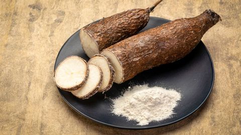 Botánicamente se denomina Manihot esculenta y pertenece a la familia de las euforbiáceas. Popularmente se la conoce como mandioca, entre otras acepciones. Es un arbusto perenne originario de las zonas tropicales de Sudamérica. Su raíz es rica en almidón y es la parte que se utiliza para consumo humano y se puede encontrar en los mercados europeos.