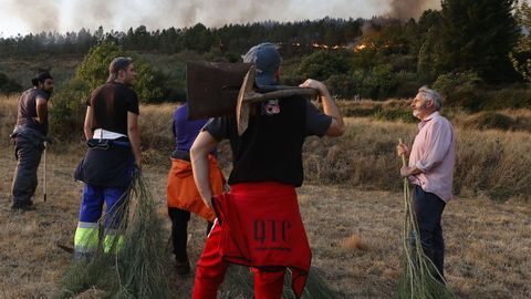 En un pueblo de la provincia de León, los vecinos se han coordinado para limpiar los alrededores de maleza e impedir así que el fuego pueda llegar a sus hogares. Los medios de comunicación cuentan,