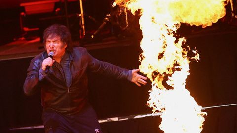 Javier Milei es la estridente prueba de que uno puede tener el cerebro incluso más disparatado que el cabello y llegar a presidir un país tan grande como Argentina. Allí se votó de perdidos, al río. La consecuencia natural de aquello es un país que sigue ahogado, con un presidente incapaz de sacarlo a flote, porque una cosa es predicar y otra dar empanadillas. En plena combustión, a escándalo por día, el presidente da un concierto de rock en Buenos Aires para presentar su libro La construcción del milagro. De qué milagro se trata es lo de menos, el populismo se construye con palabras, no con hechos. El espectáculo incluye fuego, acaso para freír más las neuronas de la concurrencia. He aquí a otro amigo de Santiago Abascal a punto de ser pasto de sus propias llamas, como Jair Bolsonaro, pero sin dar golpe, con perdón. Nerón Milei, profanando el Libre de Nino Bravo. A este hombre no lo salva ni Donald Trump. Él canta y lo que suena es un réquiem por Argentina. Estaba cantado.