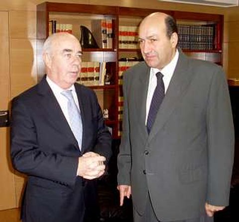 A la izquierda -nunca mejor dicho- , Camilo Ocampo, subdelegado del Gobierno, del PSOE, y a la derecha, el delegado territorial de la Xunta en Ourense, Rogelio Martínez, del PP. Sus diferencias políticas no impidieron el respeto al protocolo y al diálogo institucional durante el mandato de ambos, tal y como demostraron ayer en la entrevista que mantuvieron. El primero se despide de un cargo -para el que el PP, por cierto, aún no ha confirmado sustituto- y el segundo quiso despedirse de él. foto cedidA