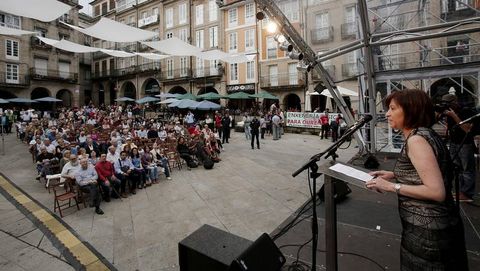 La exministra recordó sus estudios en el Instituto Femenino, el actual Otero Predayo, y unas fiestas de tómbolas, juegos en la Alameda, baños en el río Miño «e o cheiro a verán no Posío». Se refirió en el pregón a la ciudad como un espacio «de xentes laboriosas, que saben superar as dificultades coa súa chispa -para iso somos a terra dela- e o seu traballo», como tierra de artistas y de escritores -citó, entre otros, a Prego, Virxilio, Quessada, Otero Pedrayo, Risco, Valente y Casares- y definió la riqueza termal de Ourense como uno de los «sinais de identidade».