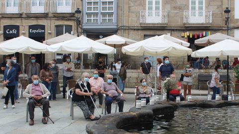 Este martes, usuarios del geriátrico de Celanova se congregaron en el centro de la localidad para homenajear a las víctimas de covid-19 que hubo en el municipio. La convocatoria, auspiciada por la federación de usuarios y familiares REDE, se inició un poco antes del mediodía. En el acto, con flores y velas, hubo hueco para un minuto de silencio por los fallecidos durante la primera ola de la epidemia. En el caso de Celanova, once.
