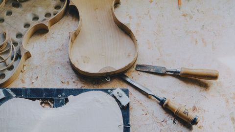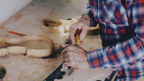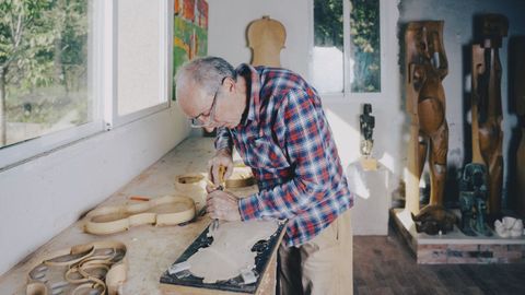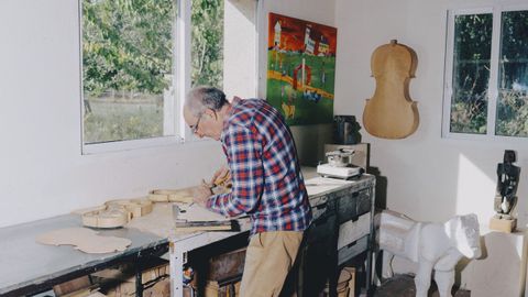 En una pequeña aldea de Outeiro de Orraca, en Allariz, el silencio rural se quiebra con los sonidos de la madera trabajada y las cuerdas afinadas. Allí, en su taller, Arturo Andrade recibe a quienes quieren descubrir el arte de la lutería y la escultura, dos oficios que en sus manos se entrelazan con la paciencia y el tiempo. Desde el año 2005, Andrade dedica su día a día a la creación de instrumentos como violines, violonchelos, guitarras y otros que nacen de la precisión, la experiencia y la sensibilidad que la madera exige. Cada pieza que fabrica no es solo un instrumento: es una obra única que encierra horas de estudio, dedicación y un oído afinado al detalle. Su relación con el arte comenzó mucho antes. Durante más de cuarenta años, Andrade ha trabajado la escultura, moldeando piezas y formas con la misma entrega con la que da vida a sus instrumentos. «El lutier no se hace de un día para otro», explica mientras muestra el delicado proceso de construcción de un violín. «Hay que nacer con ello y saber lo que se precisa. Aunque te lo expliquen, es un camino difícil. Requiere mucha paciencia y dedicación».