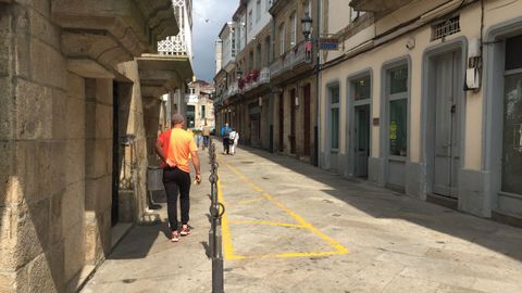 Los pivotes también se colocarán desde la esquina de la plaza Mayor con Pardo Bazán, desde la esquina de una farmacia, un punto conflictivo pues confluyen vehículos y peatones sin separación.