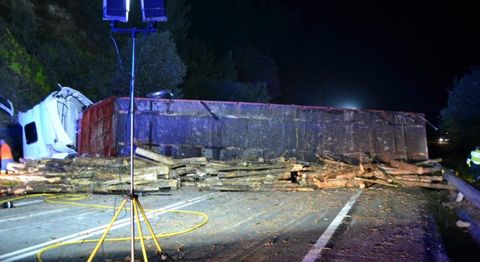 Aunque no hubo que lamentar daños personales ya que el chófer del camión resultó ileso y ningún otro vehículo se vio afectado por el suceso, el incidente provocó un amplio despliegue de medios. Y es que el tráiler iba cargado de troncos de madera, que cayeron sobre el asfalto y empezaron a rodar por la calzada, llegando algunos a aparecer a varios cientos de metros del lugar en que quedó el vehículo de gran tonelaje. El conductor dio negativo en las pruebas de alcohol que se le realizaron.