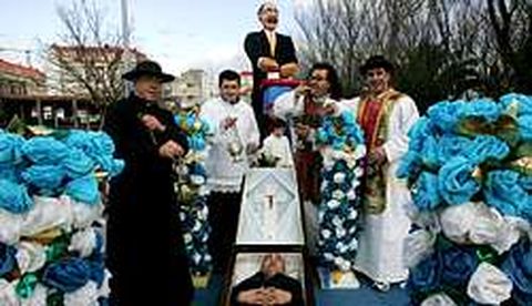 05 mar 2006 . Actualizado a las 06:00 h.El carnaval dio ayer sus últimos coletazos en la provincia de Pontevedra. En Vilanova de Arousa se celebró el tradicional desfile del Momo, que este año se encarnó en la persona de Josep-Lluis Carod-Rovira, presidente de Esquerra Republicana de Catalunya (ERC). Por supuesto, el nuevo Estatut fue el protagonista de las letrillas de las coplas del entroido. El Alto dos Xenerais de Merza, en Vila de Cruces, junto con el Discurso dos Mouros y el Sermón do Frade, cerraron ayer el entroido en Deza. Unos actos que se habían suspendido el 19 de febrero por las lluvias. Desde la mañana hubo recorrido de once Xenerais por las calles, para después llevar a cabo el tradicional atranco, en el que no faltaron las alusiones a los políticos o al Estatut. También hubo desfile de carrozas y las coplas de los mouros. En la comarca pontevedresa, los ecos del entroido se dejaron sentir en Bueu, con el entierro de su paxaro de mal agoiro, seguido por cientos de personas. En Cuntis, por su parte, despidieron a Don Carnal celebrando la Festa do Lacón con Grelos. Mucho público se acercó a la plaza de la Constitución para degustar bajo carpa raciones de este plato y filloas al precio de 5 euros.