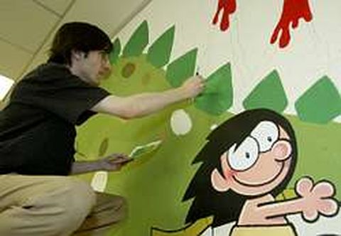 Desde principios de este mes, el artista y dibujante de La Voz, Kiko da Silva, ha emprendido uno de sus proyectos más ambiciosos, en el que empleará todo el verano. Se trata de la decoración de la sala infantil de la biblioteca pontevedresa a base de un gran mural, en el que se refleja la historia con el referente de los grandes clásicos de la literatura. De momento, estamos todavía en la Prehistoria, pero Da Silva ya ha recibido los primeros comentarios no sólo de los críticos más exigentes, los niños que habitualmente acuden a esta sala, sino también de quienes la visitan con curiosidad para admirar su trabajo. De todo ello el creador habla en su blog, en el que diariamente recoge la evolución de su trabajo (http://kikodasilva.blogspot.com). «Había hecho murales para decorar paredes de bares, pero por encargo -subraya-. Este es el primero que hago con temática libre, y tiene mucho que ver con mi trabajo, porque se trata de ilustrar una biblioteca. Para mí es también muy importante que los niños conozcan lo que hago». El primer mural, el de la Prehistoria, decora las paredes de la zona infantil, y la idea de Da Silva es que la historia siga una evolución lógica de forma que la pared donde se dibujará el mural del futuro esté en la zona juvenil, con el escritor Julio Verne como referencia. En la parte dedicada a estudio, irá el mural de la Revolución industrial. Pero volvamos al inicio. El dinosaurio agarrado por un niño que representa la primera época de la historia está practicamente terminado, según Da Silva. Ese mismo niño irá creciendo a medida que avanza el mural. «Tenía que empezar por un dinosaurio, porque a los niños les encantan, es para dar la bienvenida a la sala», indica. Primeros comentarios «Hoy unas niñas estuvieron espiándome mientras trabajaba -éste es uno de los primeros comentarios del artista en su blog-. Una se preguntaba si el dinosaurio estaba dormido o muerto, pero de repente la otra le dijo... ¡Lo raro es que un niño tan pequeños sea tan forzudo! Y la amiga le contestó: ¡Claro! ¿No ves que se come un dinosaurio entero el sólo??Francamente este tipo de comentarios me alegran la mañana». Los hay todavía más curiosos, como el del pequeño que ya le avisó de que le van a reñir por pintar en la pared. «La verdad es que es muy divertido -comenta-. Si no les gustase ya me preocuparía». La pared sobre la que trabaja Da Silva está protegida con una superficie antiincendios, por motivos de seguridad.?Ello supone también una problemática a la hora de trabajar, según el artista, al menos en lo que se refiere al tiempo. Por un lado, la superficie no es plana, «sino que tiene una textura similar a la de un lienzo ampliado». «Esto complica la labor de pintar líneas uniformes, pero por otro lado se puede conseguir texturas posteriormente con el coloreado, más pictóricas que con la superficie plana, completamente. Por otro lado, no se puede pintar sobre ella con pinturas o esprais con determinados componentes químicos, ya que agarrarían mal sobre la superficie y la pintura se caería o se agrietaría al cabo de un tiempo. Por eso he tenido que encargar una pintura al temple de base para después trabajar los volúmenes con un acrílico al agua de acabado mate. Este tipo de pintura me obliga a ir muy lento a la hora de aplicar colores oscuros como el negro, ya que tarda más en secar y si se pinta varias veces por encima arrastras la pintura antes aplicada.?Pese a eso, creo que voy a poder conseguir un acabado de texturas muy interesante gracias a esta superficie». El siguiente mural Después del de la Prehistoria, que prevé terminar ya la semana que viene, el siguiente mural será el de los griegos y romanos, según explica Da Silva. De momento, el niño protagonista aún no tiene nombre, «pero seguro que se lo pondré a medida que avance». Animada estuvo también la inauguración del nuevo showroom de la firma Marmensa en Sanxenxo. El nuevo espacio reúne en 300 metros cuadrados de exposición una selección de piedras naturales con más de cien variedades. Al cóctel de inauguración, que se celebró en la noche del pasado jueves y fue servido por Rotilio, asistieron alrededor de doscientas personas, entre las que se encontraba el artista Francisco Leiro.