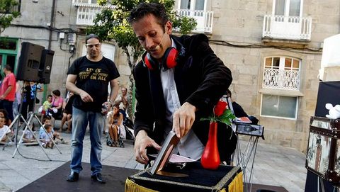 El popular mago pontevedrés actuó ayer en la emblemática plaza del Teucro