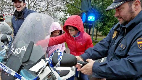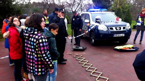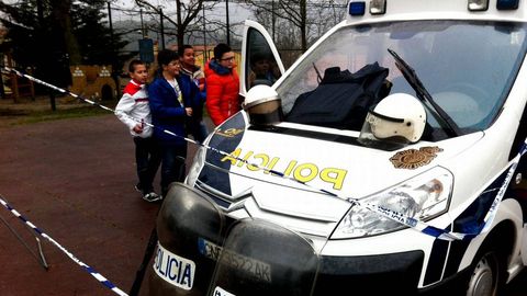 La jornada de ayer posibilitó que los niños pudiesen observar de cerca la equipación que emplean los antidisturbios, una unidad policial muy criticada a raíz de movilizaciones como las que se han producido en el barrio burgalés de Gamonal. Cascos, escudos y escopetas, acompañadas de las siempre polémicas pelotas de goma, fueron examinadas con detenimiento por los escolares de San Martiño.