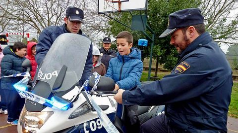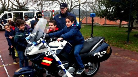 25 ene 2014 . Actualizado a las 07:00 h.Se les hizo corto. Los niños del colegio San Martiño, en Salcedo, pasaron ayer un rato inolvidable acompañados por varios agentes de la Policía Nacional que desplazaron hasta el centro educativo coches y motocicletas oficiales. Lo cierto es que muy pocos, por no decir ninguno, se resistieron a la tentación de hacer sonar las sirenas o a situarse a los mandos de una moto ante la paciencia infinita de los agentes.