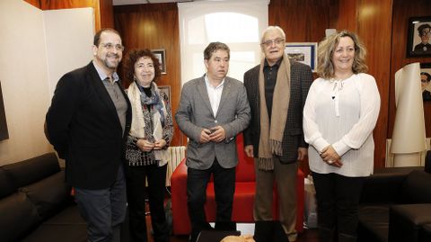 Víctor Freixanes, acompañado polo secretario da institución lingüística, Henrique Monteagudo, e da tesoreira, Marilar Aleixandre, mantivo onte unha reunión no Concello co alcalde, Miguel Anxo Fernández Lores, e a concelleira de Cultura, Carme Fouces, para abordar as liñas xerais da programación do Ano María Victoria Moreno.