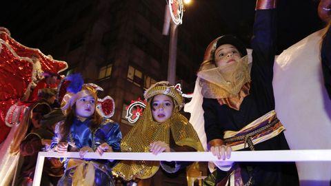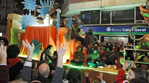 La cabalgata de los Reyes Magos celebrada ayer en Pontevedra fue de lo más colorista y animada. Por suerte, no hicieron falta los paraguas, aunque más de uno lo abrió para coger al vuelo una mayor cantidad de caramelos. ¡Aquí, aquí, Melchor!. ¡Gaspar, Gaspar! ¡Baltasaaar!.. Los niños pontevedreses se desgañitaron al paso de sus majestades de Oriente, que repartieron casi dos toneladas de caramelos como aperitivo de los regalos que dejarían por la noche en los hogares.
