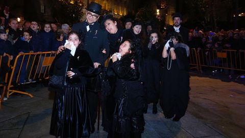 Amelia Filgueira se ríe cuando se le pregunta por el llanto de su hija. Luego, explica que la tradición de llorar a Ravachol le viene de cuna. «Pertenecemos a los Amigos de Ravachol y siempre vamos en la comitiva fúnebre. La verdad es que ella lo mamó desde que nació. La llevamos todos los años y siempre disfrutó de la fiesta. Lo de este año fue mucho, se metió en el papel desde el minuto cero», cuenta Amelia.