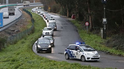 Por tercer viernes consecutivo, trabajadores de Ence y sus industrias auxiliares secundaron este viernes una protesta en defensa de la continuidad de la fábrica en Lourizán. En esta ocasión, la protesta tomó forma de una caravana conformada por decenas de vehículos ligeros que partieron del entorno de la de la fábrica de La Cross para culminar en el complejo industrial, donde se leyó un manifiesto. La plantilla de la pastera considera que la Ley de Cambio Climático amenaza su presencia en la ría. foto Capotillo