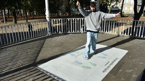 A idea é tan sinxela, como efectiva. Cunhas pegadas no chan, calquera persoa poderá aprender estes pasos básicos «que espero levar polos concellos de Galicia, polos centros educativos e por todos aqueles lugares que estén interesados, como os centros galegos, que todo o mundo teña nun cachiño de chan do seu pobo estes pasos para poder aprender os pasos básicos do baile», insistiu Artur Puga.