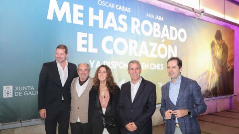 Entre el elenco, además de los dos protagonistas, nombres tan conocidos del audiovisual gallego como Luis Zahera, Miguel de Lira, Raquel Espada, Lucía Veiga, Francis Lorenzo o Monti Castiñeiras, que comparten minutos junto al cómico y conocido influencer gallego Xurxo Carreño y a Antonio Pagudo, Ana Milán, Arturo Valls, Alba Gutiérrez, Mario Marzo, Pol Granch o Juan Amoedo, entre otros. De hecho, la presentación en Pontevedra contó con la asistencia de Óscar Casas, Ana Jara, Antonio Pagudo, Xurxo Carreño, Lucía Veiga y Francis Lorenzo, junto a la directora Chus Gutiérrez y parte del equipo de producción. Sony Pictures distribuye el filme, que se estrenó en las salas comerciales el pasado viernes, y en el que también participan RTVE y TVG, así como Prime Video.
