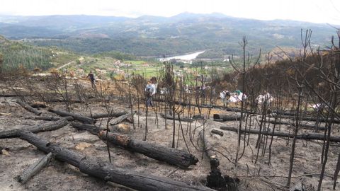 Comuneros de Ponte Caldelas explican los problemas para sacar los árboles quemados