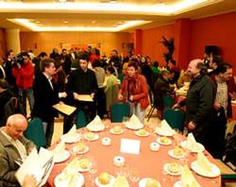 02 mar 2006 . Actualizado a las 06:00 h.A Central Intersindical Galega (CIG), e os Comités Abertos de Facultade (CAF) celebraron o 150 aniversario do histórico Banquete de Conxo, o xantar organizado polo poeta e daquela estudante de dereito Aurelio Aguirre, e no que tamén participaron Eduardo Pondal, Manuel Murguía e seica que ate Rosalía de Castro, para que os obreiros e os estudiantes da cidade compartiran os ideais por unha sociedade máis libre e as ideas socializantes que agromaban nunha Compostela que, con 23.000 habitantes en 1856, perdera 5.000 pola fame xerada pola crise que motivou unha forte emigración a América. O caso é que onte a cita non foi na carballeira de Conxo, que en 1856 era concello independente, porque onde había carballos naceron chalés. O xantar foi nun hotel de cinco estrelas frente por frente do edificio que alberga aos sindicatos, compartido por 150 persoas do mundo laboral, da universidade e da cultura. Como hai 150 anos, houbo reivindicacións, pero non había policías vixiando. O menú, agás o cava co que os comensais fixeron un brinde pola patria e a súas xentes, non debeu ser moi diferente: xamón (o de onte cocido), empanada e lulas fritidas (en Conxo ao mellor houbo polbo); e carne estofada con patacas. O viño era mencía e o postre de chocolate. A distancia acortouse entre os traballadores, representados polos membros do Consello Confederal da CIG, e os estudantes, en nome dos que había 150 CAF de todos os campus galegos, nun universo nacionalista relaxado e ate certo punto satisfeito, porque na mesa número un estivo o líder do BNG e vicepresidente da Xunta de Galicia, o «compañeiro» Anxo Quintana, como lle chamou o mestre de cerimonias, Manuel Mera, que saudou o acto como mostra da loita para facer visible a nosa historia. Compartiu xantar co concelleiro de Cultura compostelán, Néstor Rego; co secretario xeral da CIG, Suso Seixo; a líder nacional dos CAF, Iria Aboi, que fixo un discurso que apunta maneiras políticas, pode que para facer carreira na liña da conselleira Ánxela Bugallo, que foi unha destacada líder estudiantil. Alí estaban tamén o secretario da FPG, Mariano Abalo; o de Galiza Nova, Emilio Vicente; e Uxía Senlle, que representaba a Nunca Máis. Destacou a presenza de Avelino Pousa Antelo, da Fundación Castelao, que recibiu un cálido e merecido aplauso. Polo mesmo «gremio» asistiu a ex deputada e profesora da Universidade da Coruña Pilar García Negro, da Fundación Bautista Álvarez. E non faltaron os presidentes das asociacións de Escritores en Lingua Galega, Cesáreo Sánchez, e de Editores, Miguel Anxo Fernán Vello; e o da Mesa pola Normalización , Carlos Callón. Preto deles, odirector da TVG, Suso Iglesias, e a maxistrada Ana Suevos. A reforma do Estatuto e a minoría parlamentaria do BNG no proceso saíron no discurso de de Seixo, que convidou a facer «un frente común fronte ao españolismo».