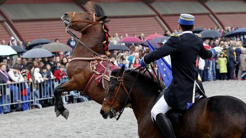 Mientras Calamaro arrancaba la Ascensión al ritmo de Me arde, la fiesta seguía subiendo al coto de Santa Susana y hoy, durante toda la mañana, el protagonismo se traslada a Amio con la feria de caballos, que reunirá a miles de personas para disfrutar de las exhibiciones equinas (desde las 10 horas) y degustar la inevitable ración de pulpo. Uno de los episodios más vistosos de la feria será el festival ecuestre que se celebrará después de las competiciones morfológicas de pura raza gallega (a partir de las 12 horas). Se trata del show equino denominado Galicia cabalga, que al son de música gallega y flamenca hará «bailar» a nueve caballos de distintas razas en una de las mejores muestras de doma que se pueden presenciar. La coreografía basada en El Zorro completa este espectáculo presentado por Jacobo Pérez Paz y al que pondrá voz Judith Cundíns.
